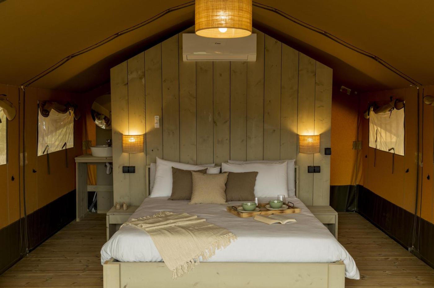 Tenda. The pool with a view is a top feature of this tent. Guests will find a stovetop, a refrigerator, kitchenware and a tea and coffee maker in the well-fitted kitchenette. The tent also includes a barbecue. The tent features air conditioning, a private entrance, a terrace with garden views as well as a private bathroom boasting a shower. The unit has 2 beds. ;