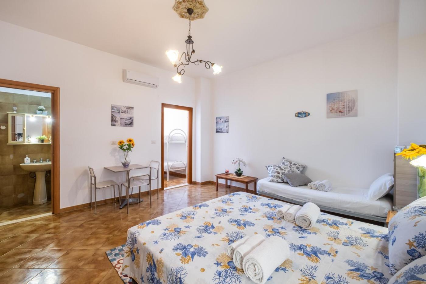 Camera Quadrupla con Doccia. Providing free toiletries, this quadruple room includes a private bathroom with a shower and a hairdryer. The quadruple room provides air conditioning, a washing machine, a private entrance, a coffee machine and a TV with cable channels. The unit offers 3 beds. ;