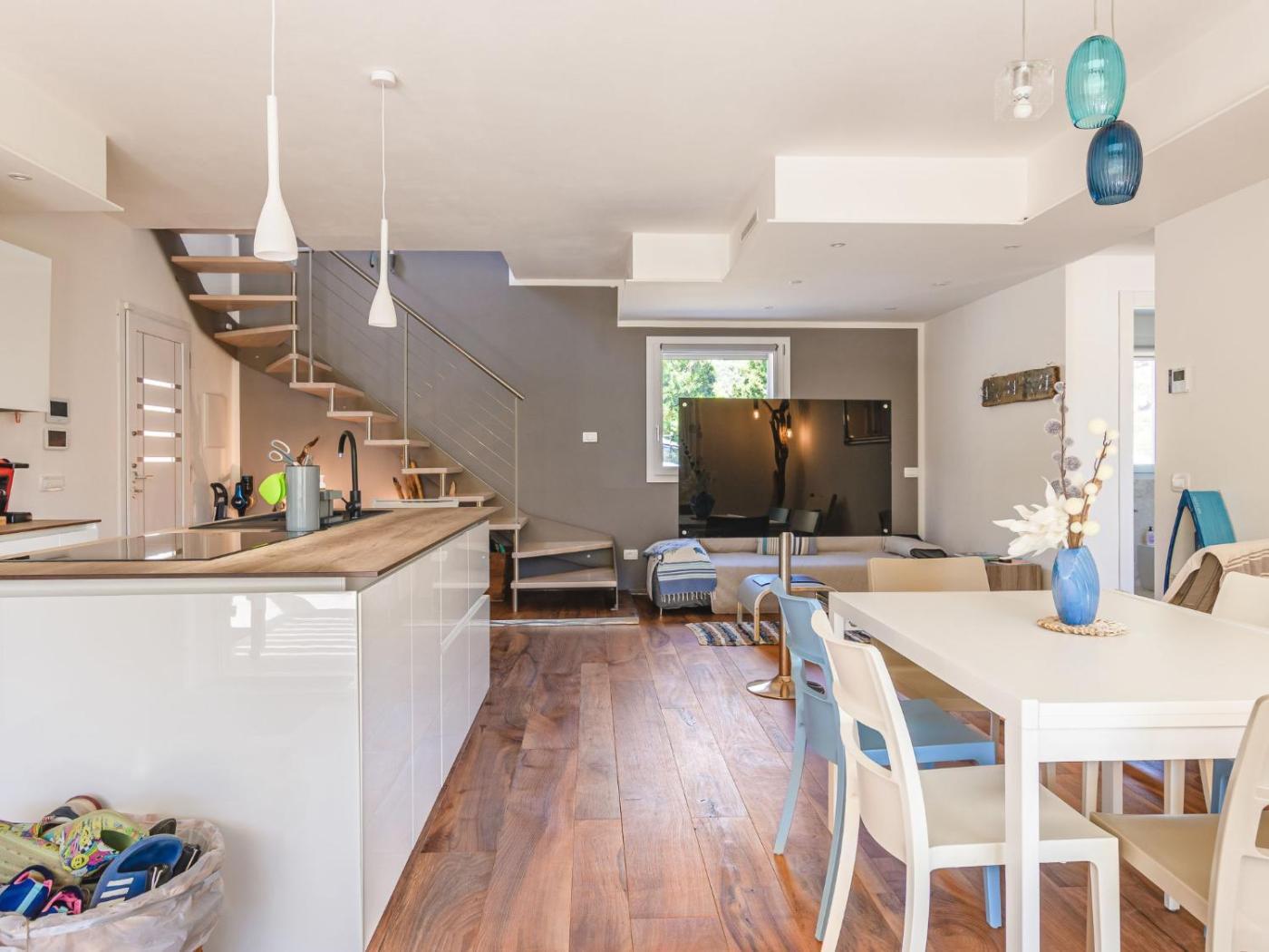 Questa casa vacanze con aria condizionata prevede 3 camere da letto e 2 bagni con bidet, doccia e asciugacapelli. La cucina dispone di frigorifero, lavastoviglie e forno più macchina da caffè.